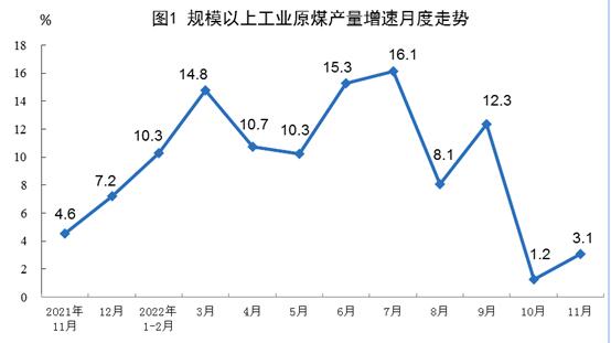 11月份,能源保供穩(wěn)價(jià)政策有力推進(jìn),規(guī)模以上工業(yè)原煤、原油、