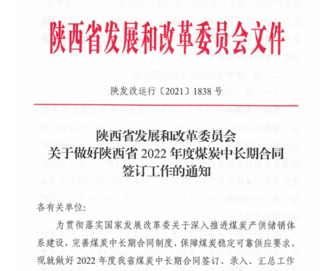 關(guān)于做好2022年度煤炭中長(zhǎng)期合同簽訂工作的通知